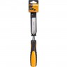 Рабочая кромка полотна заточена под углом 20-30 градусов, что позволяет проводить работы с наибольшей точностью и наименьшими усилиями. Инструмент предназначен для выборки и зачистки гнезд, пазов, шипов, снятия фасок и других столярных работ.