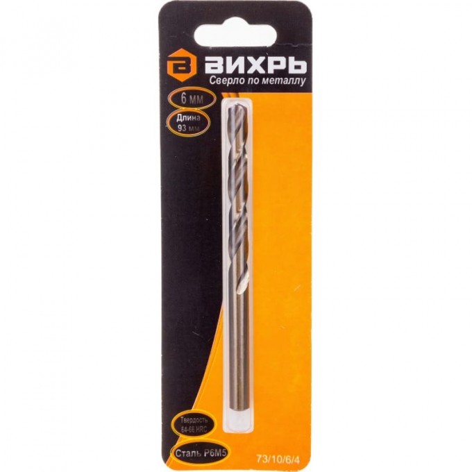 Сверло по металлу ВИХРЬ 6 мм, P6M5 (1 шт. в блистере) 73/10/6/4