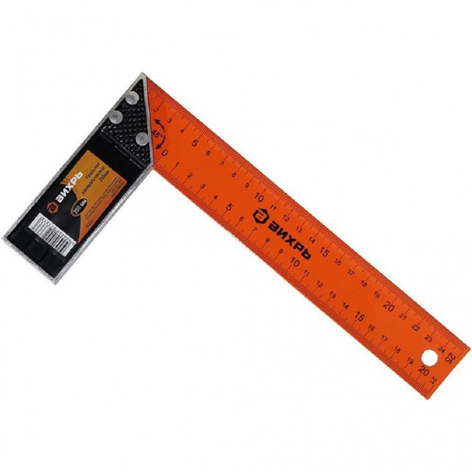 Металлический угольник 250 мм Вихрь 73/11/3/1 имеет высокую прочность и легко справляется с определением углов 45 и 90 градусов.